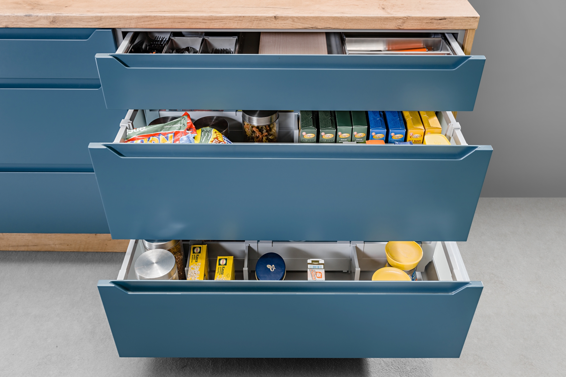 W urządzeniu funkcjonalnej przestrzeni kuchennej szuflady są niezawodne! To nasi sprzymierzeńcy – pomagają zorganizować wygodną zabudowę meblową i zapanować nad porządkiem, co, z uwagi na roboczy charakter pomieszczenia, bywa niełatwe. W każdej kuchni jest przecież wiele rzeczy, które musimy gdzieś schować, a jednocześnie chcemy mieć pod ręką. Dzięki szufladom naczynia, sztućce, akcesoria kuchenne i produkty spożywcze znajdą swoje miejsce, a my zapewnimy sobie łatwy do nich dostęp. Zanim jednak docenimy potencjał szuflad, zastanówmy się, co będziemy w nich przechowywać i jak najlepiej pogrupować ten cały dobytek, aby ułatwić sobie codzienne „poruszanie się” po kuchni.